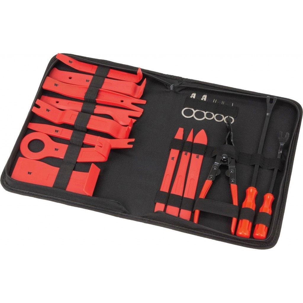 Az autókárpitok gyors, sérülésmentes eltávolítására és összeszerelésére tervezték.